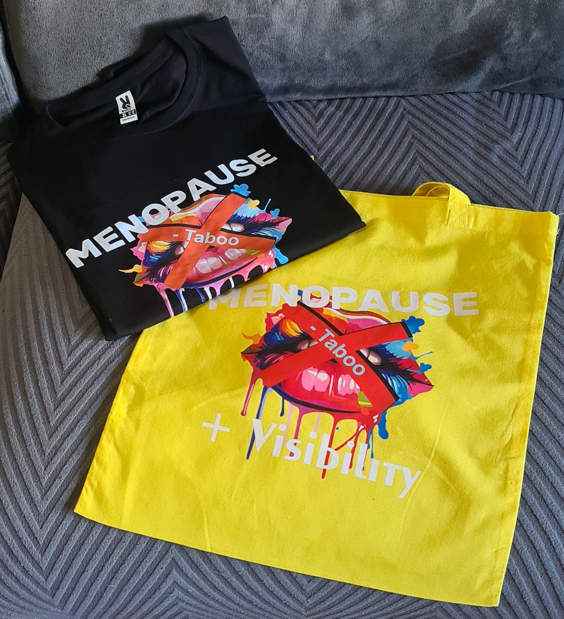 Oferta combo : camiseta menopause + vsibility-taboo y bolso tote